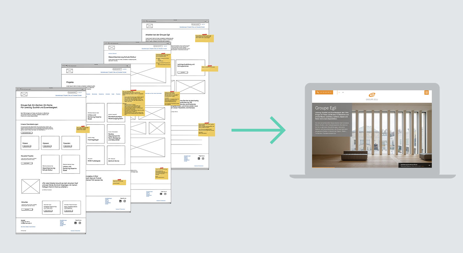 La présentation simple du wireframe est justement son point fort, car il n’y a pas de couleurs, de typographie ou d’autres éléments visuels qui détournent de l’essentiel. On peut se concentrer sur le contenu de manière détachée et sans être dérangé. Dans cette phase, nous mettons par exemple en lumière le comportement de certains contenus dans le contexte d’autres éléments de contenu, de navigations, de teasers et de composants call-to-action. Un wireframe permet de structurer les contenus et de fixer les exigences relatives aux différents types de contenus, par exemple la longueur et le type de texte ou l’emplacement des images et des icônes.