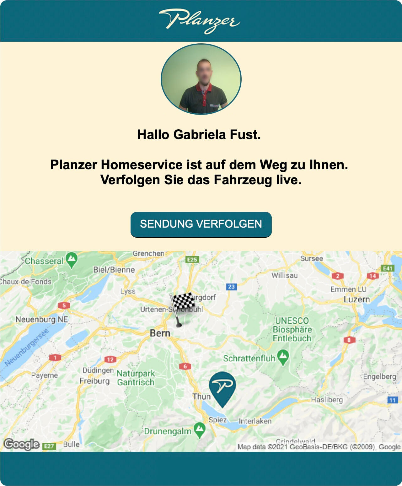 Le chauffeur arrive et, une fois la livraison effectuée, nous recevons encore en dernier lieu une confirmation.