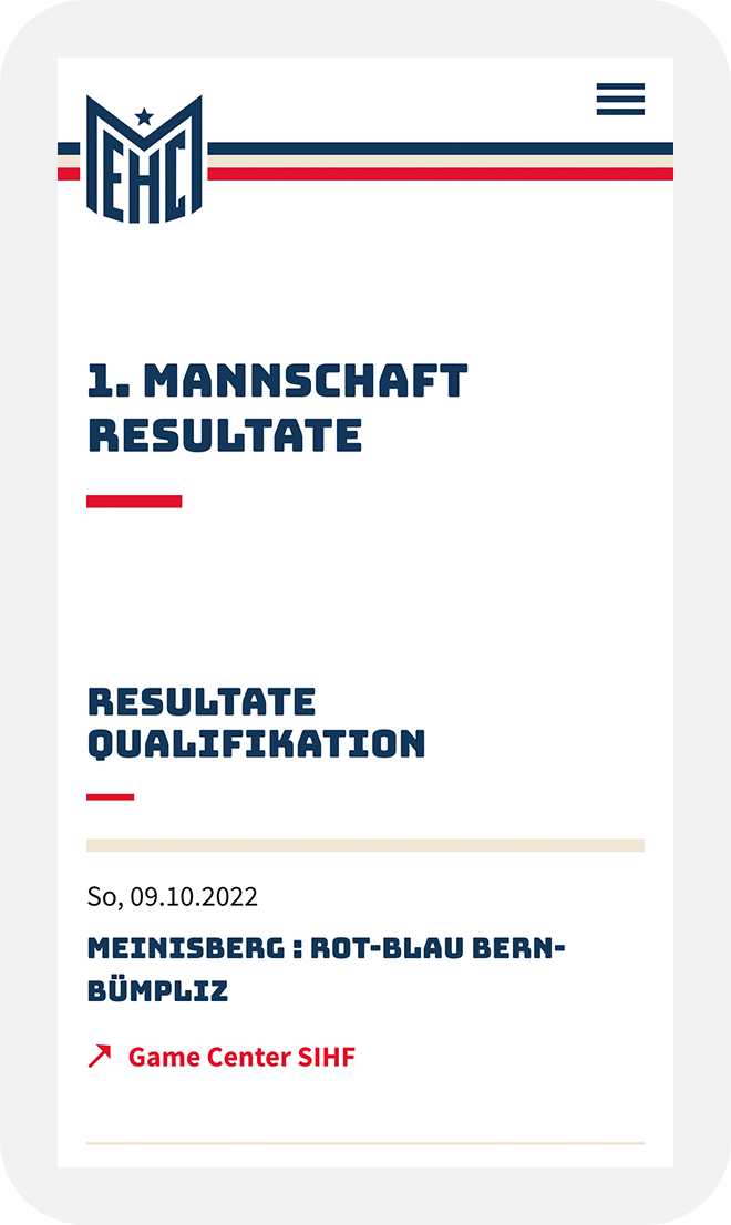 Qu’il s’agisse de vérifier les résultats actuels, de savoir contre quelle équipe se jouera le prochain match ou quels joueurs font partie de quels cadres: toutes les informations concernant l’EHC Meinisberg sont faciles à trouver et présentées de manière claire.