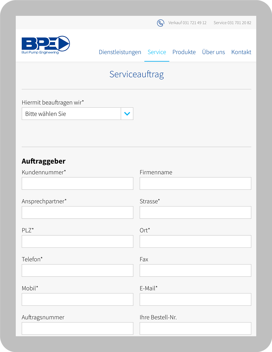 Bereits auf der Startseite sind diese deshalb prominent platziert. Ausserdem werden die Telefonnummern auf allen Seiten in der Kopf- und Fusszeile wiederholt. Zusätzlich können die Nutzer einen Serviceauftrag auch direkt online via ein Formular erteilen.