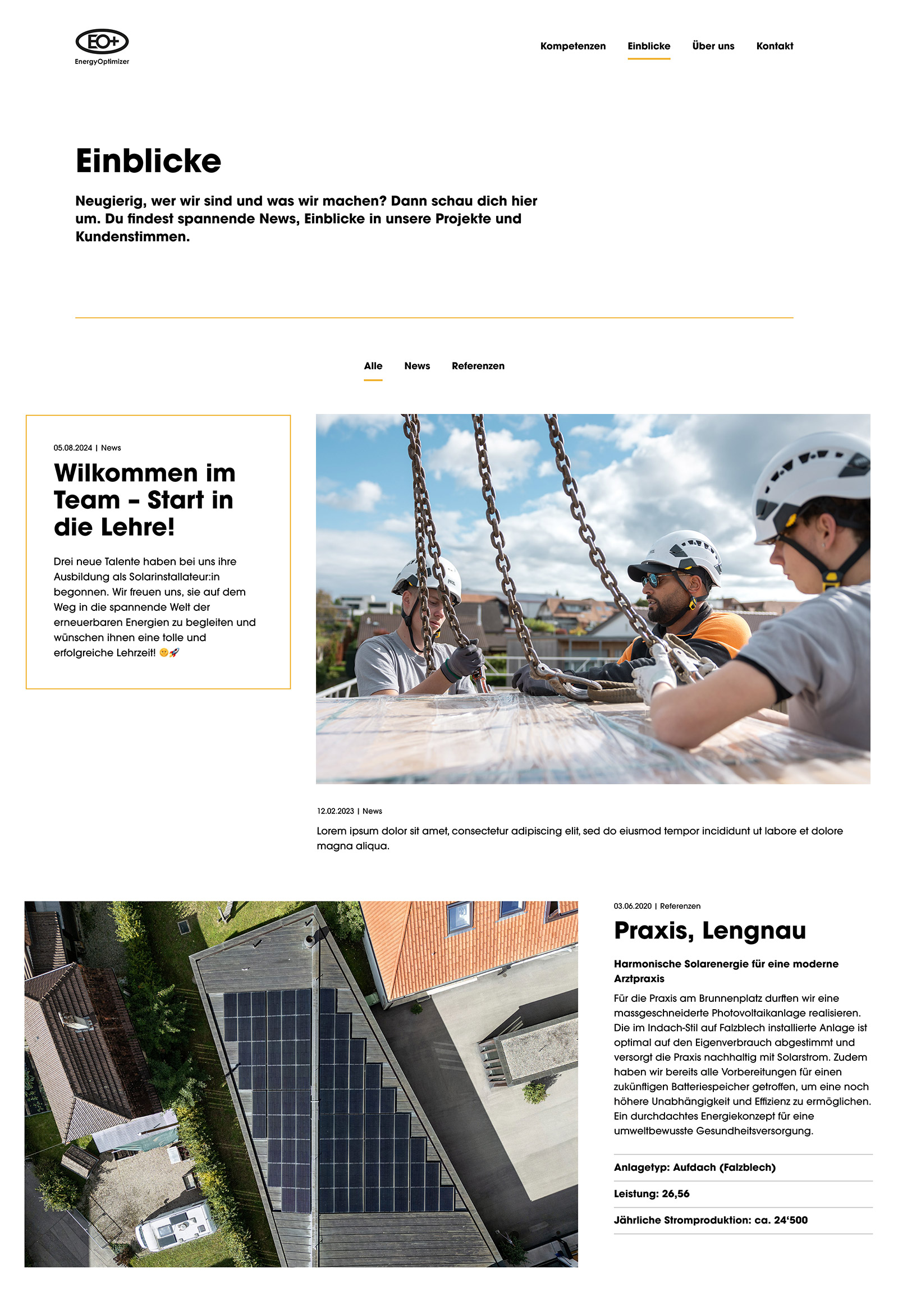 - Alles auf einen Blick: Referenzen, Kundenstimmen und News sind in einer kompakten Übersicht kombiniert, um Übersichtlichkeit und Relevanz zu wahren.