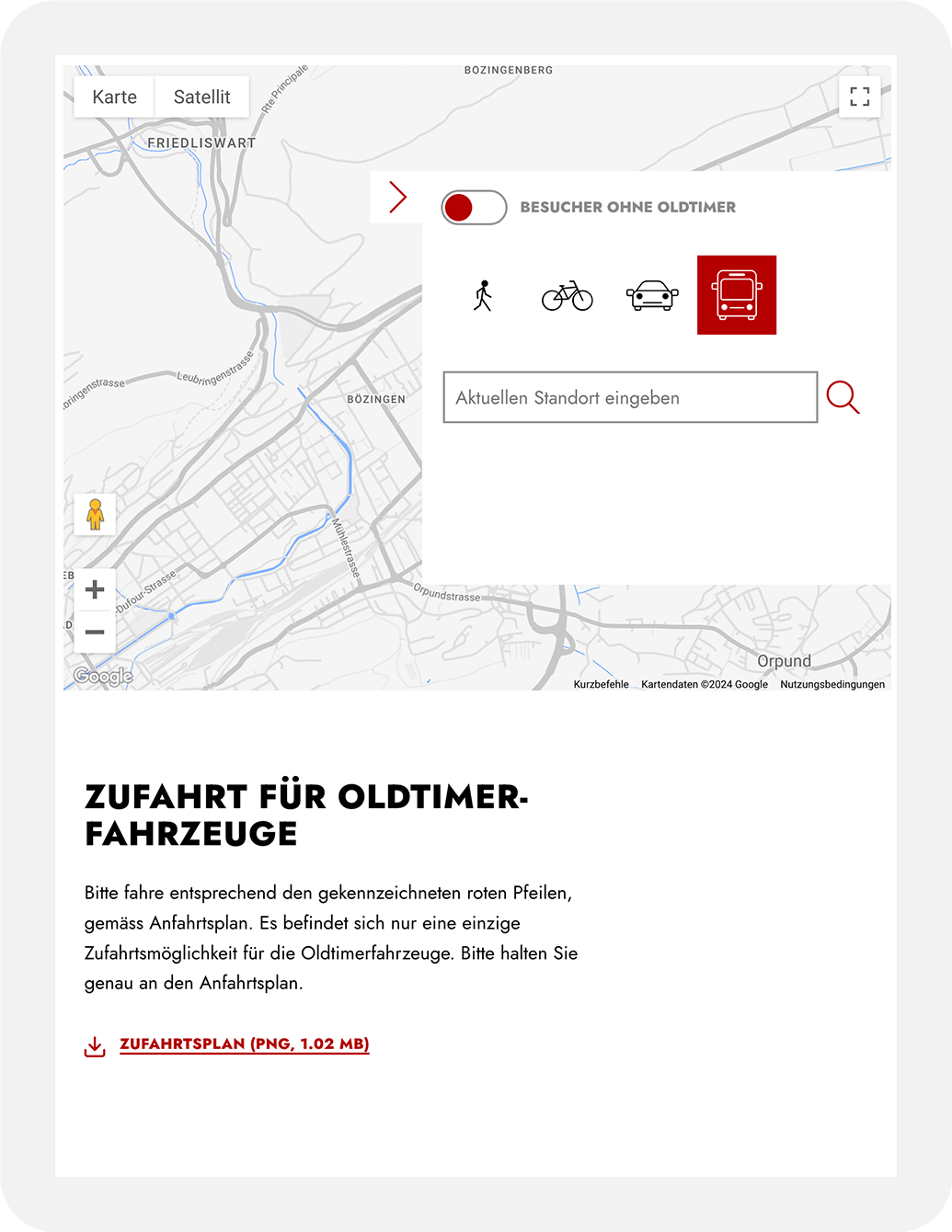Wer mit dem ÖV anreist, kann übrigens am HB in Biel/Bienne in einen alten Trolleybus steigen und bequem direkt vors Ausstellungsgelände fahren.